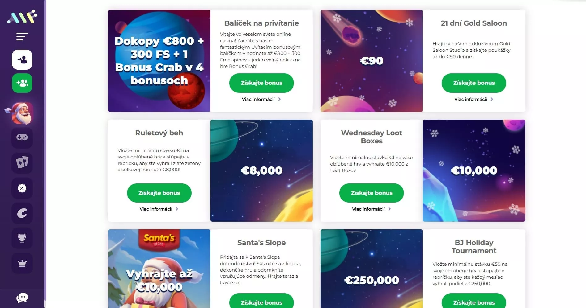 - Rôzne bonusy a promo akcie