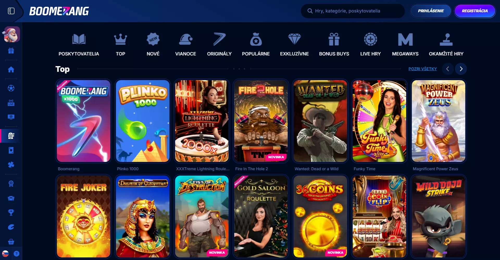 Slovenskí hráči si všetci v kasíne Boomerang Bet nájdu nejaký typ hier, ktorý ich zaujme a zabaví na desiatky hodín. Je možnosť vyskúšať si tisíce hier z kategórií výherných automatov, stolových hier a živého kasína a iných hier. Dostupné sú tiež demo verzie väčšiny titulov. O každej kategórii vám teraz povieme viac.