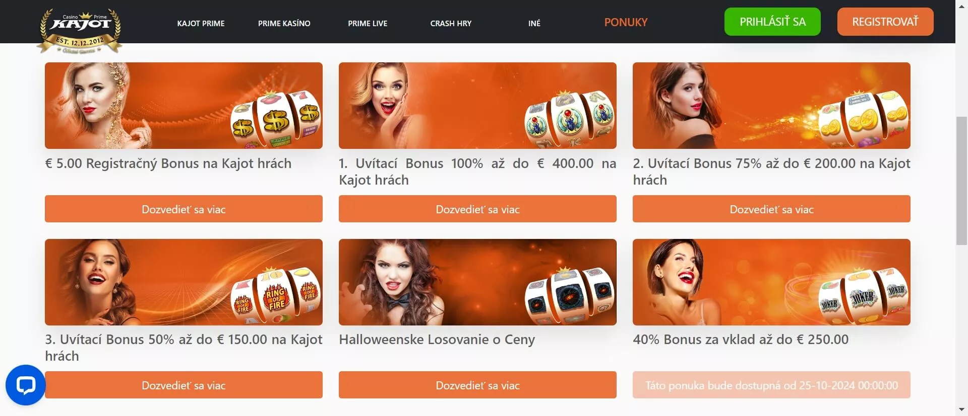 Po dokončení registrácie a overenia účtu sa môžete prihlásiť a naplno využiť ponuku hier a bonusov kasína Kajot.
