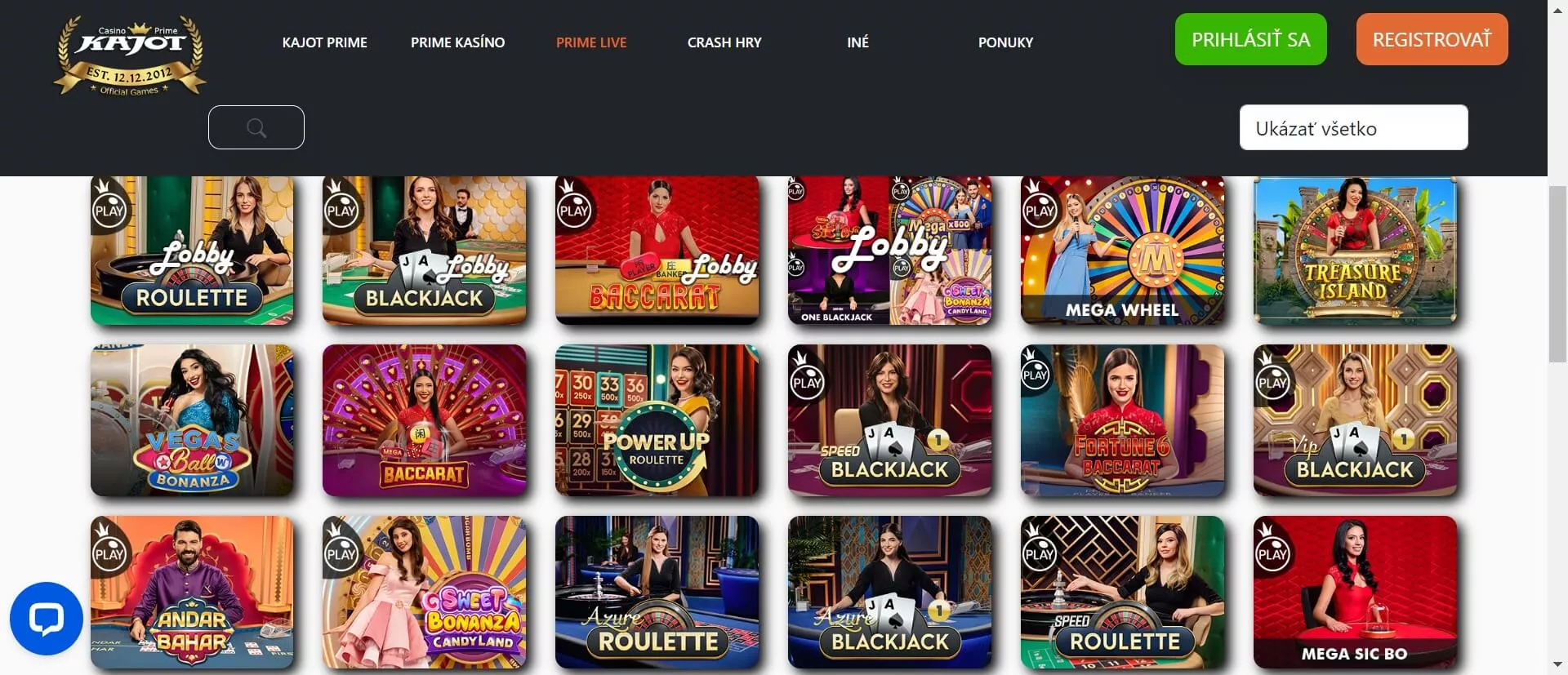 Kasíno Kajot ponúka širokú škálu živých kasínových hier, ktoré umožňujú slovenským hráčom zažiť atmosféru skutočného kasína z pohodlia domova. Na hráčov v živom kasíne okrem napínavých zážitkov tiež čaká možnosť komunikovať s krupiérmi alebo ostatnými hráčmi.