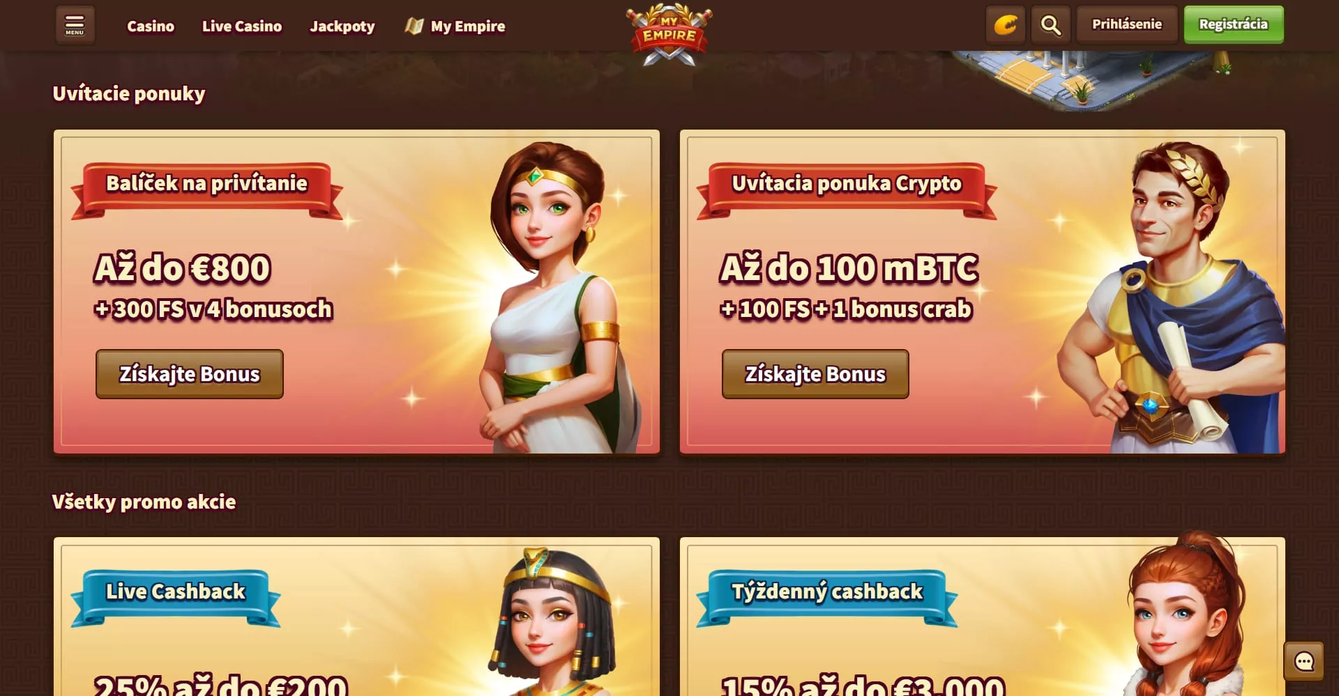 Prejdite na domovskú stránku kasína alebo použite náš odkaz pre špeciálny MyEmpire uvítací bonus Slovensko.