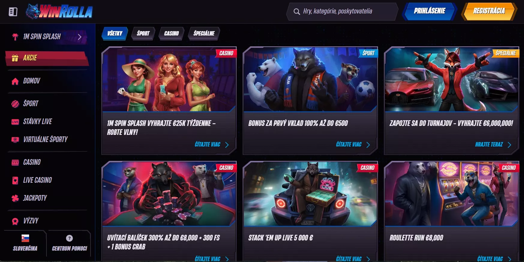 Progresívne jackpot hry ponúkajú možnosť výhier v miliónovej výške, pričom Age of the Gods sieť patrí medzi najlukratívnejšie. Turnaj súťaže sa organizujú pravidelne s atraktívnymi cenovými fondmi. Platforme nechýbajú ani crash games a virtuálne športy pre rozmanitosť herného zážitku. Hrajte v online kasíne Winrolla o skutočné peniaze s možnosťou vyhrať podstatné sumy.